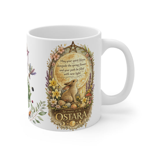 Spring Equinox Witchy Ceramic Coffee Cup | Pagan Gift | Ostara Decor | Boho Floral Rabbit Mug