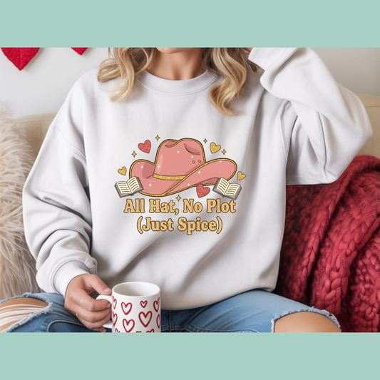 All Hat, No Plot (Just Spice) – Bookish Crewneck Sweatshirt